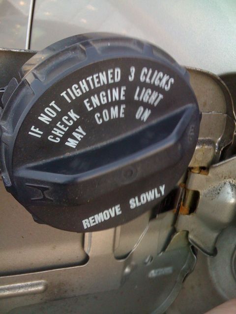 Glad to have found your blog entry… I thought I was going crazy! Three cars, and all three used to have a plate in them (all 3 GM’s), and not now. They looked very much like your middle picture. Went right out to get 3 locking fuel caps :^)