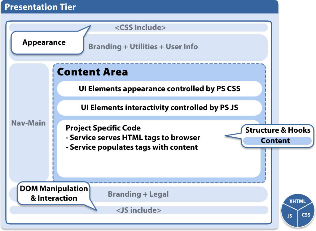 I developed a CSS architecture that matched the design system’s visual language while preserving the existing HTML structure. This worked because years of foundational work had already brought the markup to semantic, standards-based HTML. The CSS layer could be swapped without touching the underlying structure – visual consistency achieved without the multi-year rewrite.