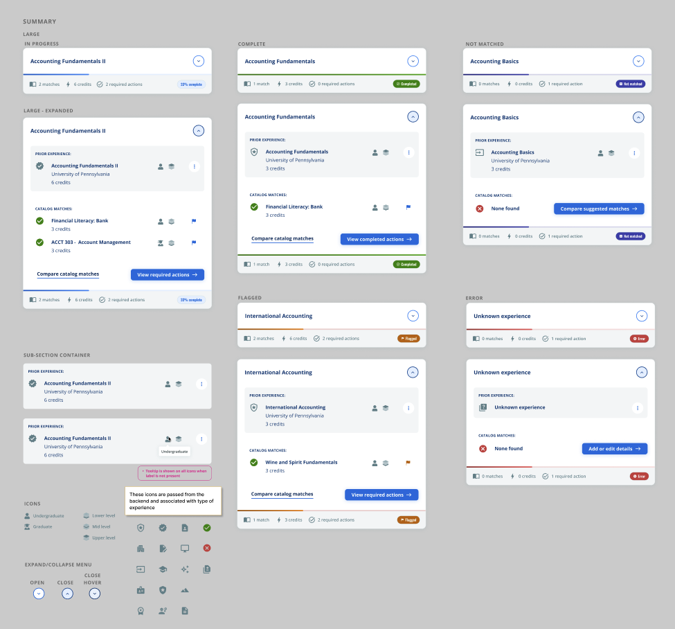 - Design system contributor defining component specs and interaction patterns for a multi-application educational ecosystem (SNHU)