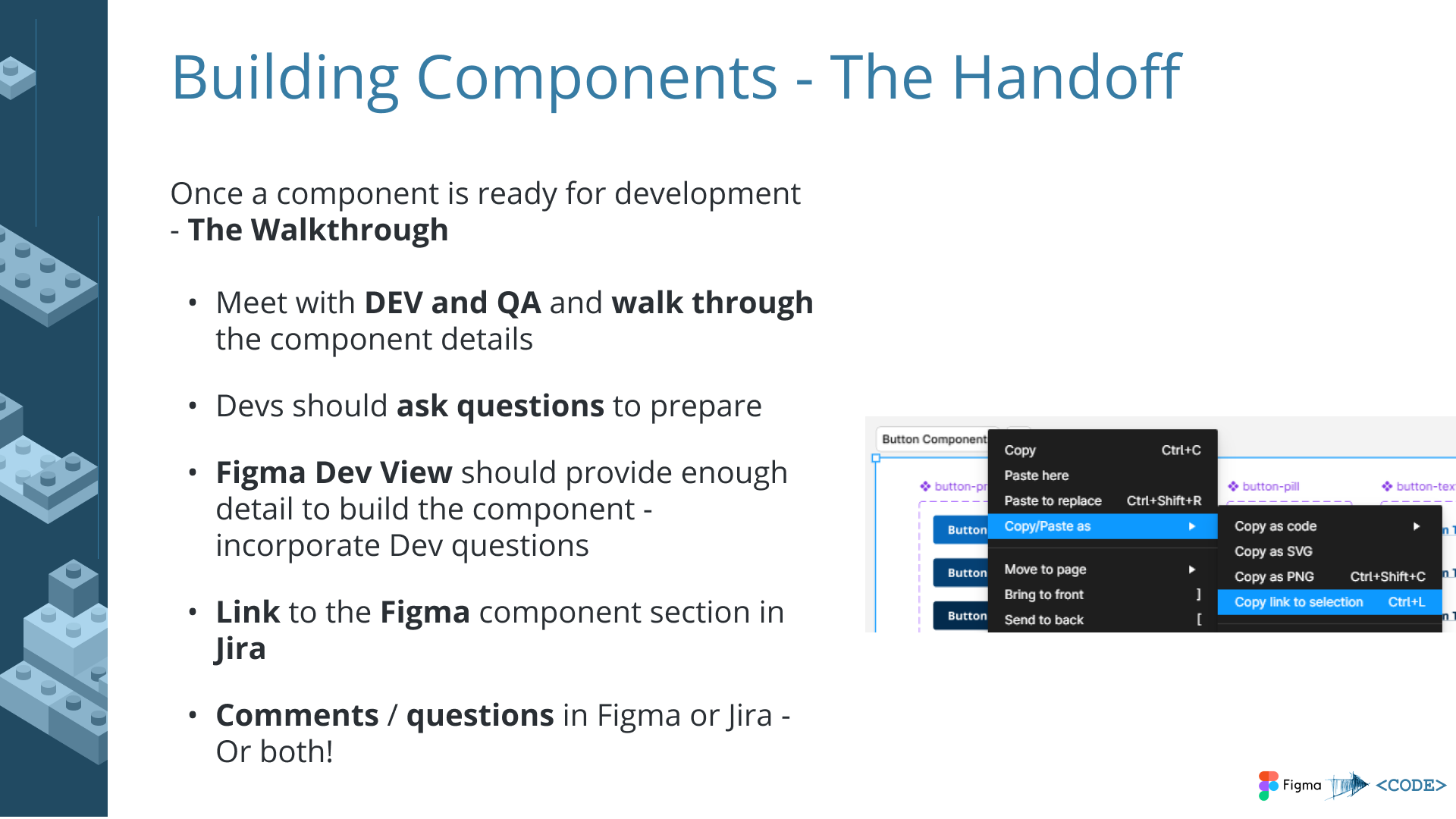 Clear specs that engineers actually use, not just designer references. If the documentation doesn’t answer a developer’s question in under a minute, it’s not good enough.