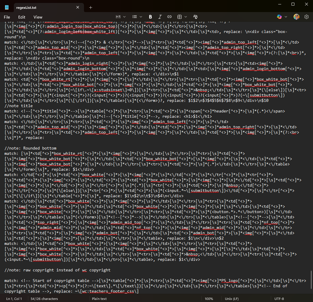 I wrote multiple complex regular expressions that would read every page on the server and rewrite them using standard page templates. By the end of the project I could migrate the entire front end (6,000 pages) in minutes. There were a handful of outliers (only 5% of the pages) which needed hand coding, but largely the site was fully migrated.