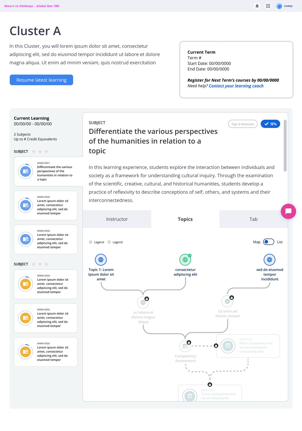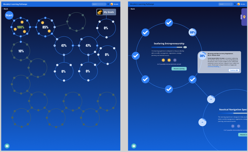 Design a complete learner experience that treated education as personal, adaptive, and goal-driven. Every aspect of the learner’s journey, from discovering programs to earning credentials, needed to work as a unified experience powered by machine learning and rich metadata. Not a better LMS, but a fundamentally different relationship between learner and institution.