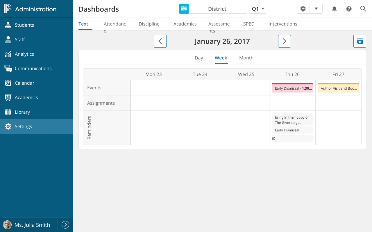| School Administrators | Review student information, run reports |