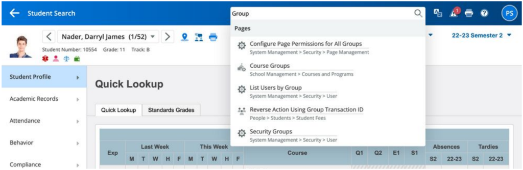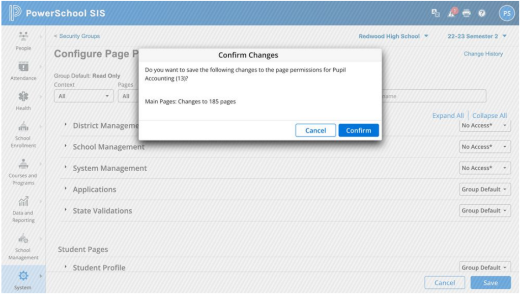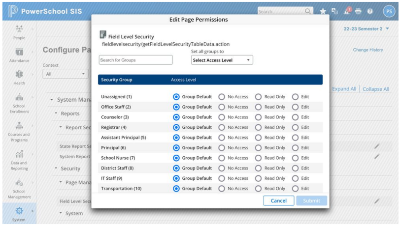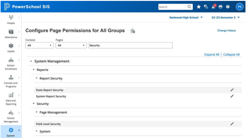 A single-page security interface replaced a page-by-page permission model that had left sensitive student data exposed to anyone who knew a URL
