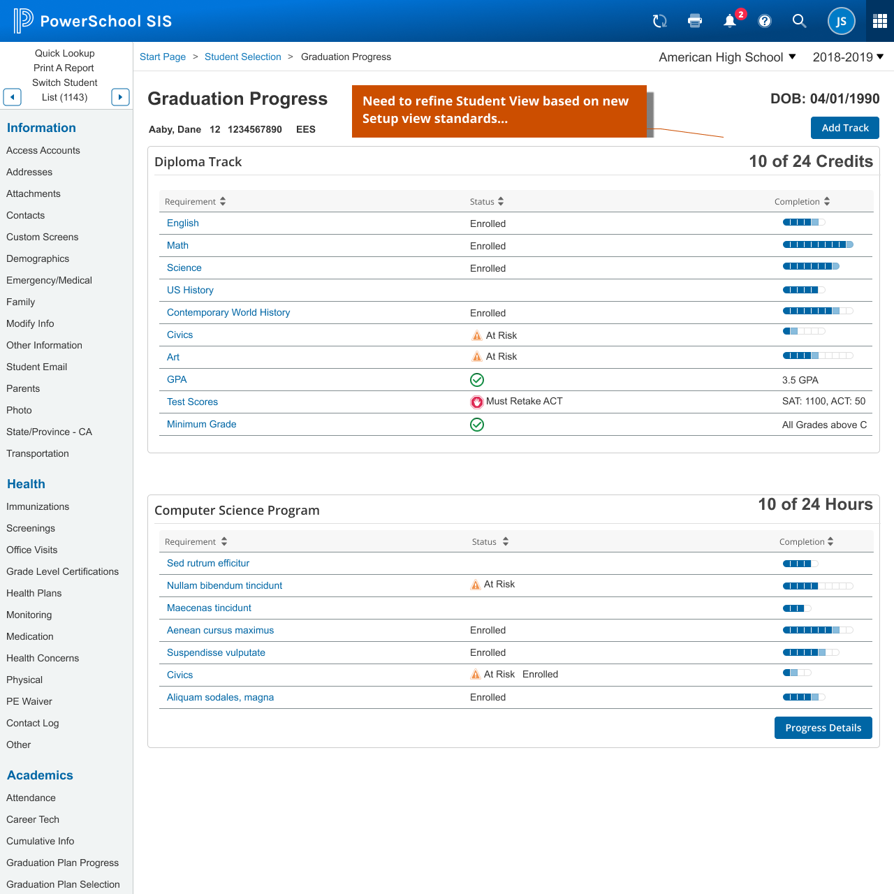 PowerSchool SIS was expanding its graduation planning capabilities. I took the opportunity to redesign not just how the plans looked, but how they were set up and how requirements were organized. The goal was to give students and counselors a tool that actually helped them plan, not just display data.